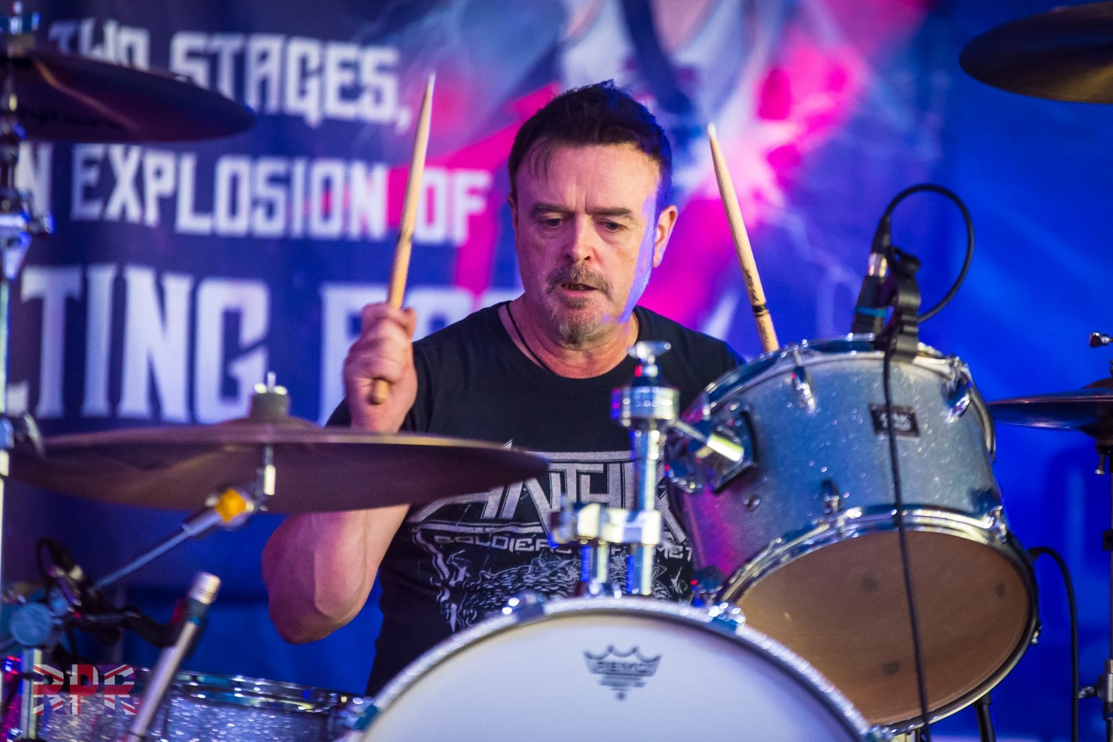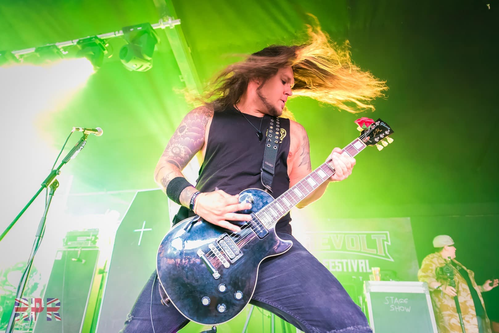 Talking of t-shirts, there were also plenty belonging to the next band on the Trooper Stage. I’ve been privileged to have seen/photographed South Of Salem quite a few times over the last few years, this is a band very much on the rise, and that is I would say down to their live performances. They are one of the few bands around who put on a show. I don’t mean other bands don’t deliver great live sets, but South Of Salem turn up with a van load of stage props & lighting. Their sets are a visual as well as an audible experience, and with the ever growing fan base, it won’t be too long before their headlining larger venues in the UK and elsewhere.